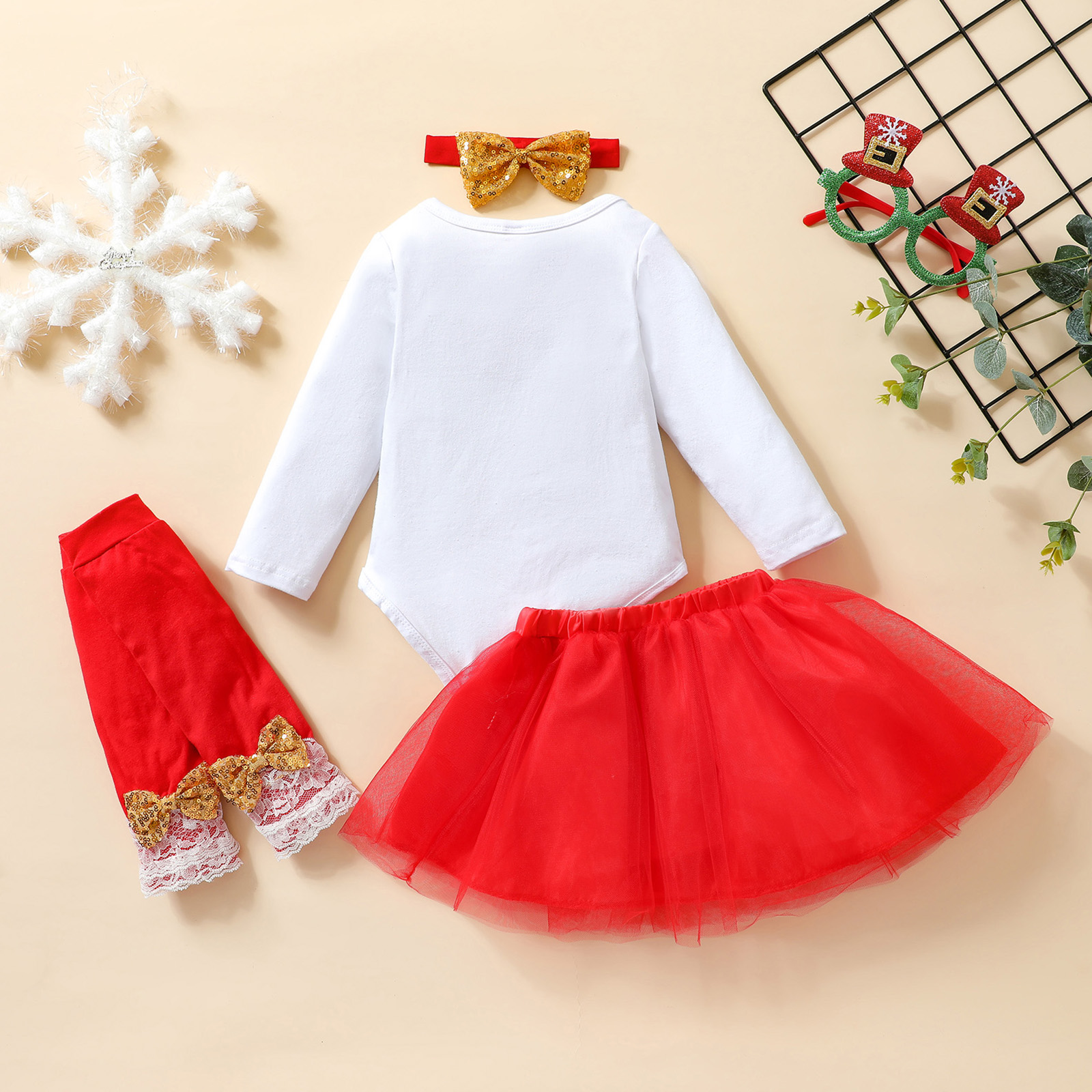 4pcs Infant Baby Girls Christmas Clothing Sets