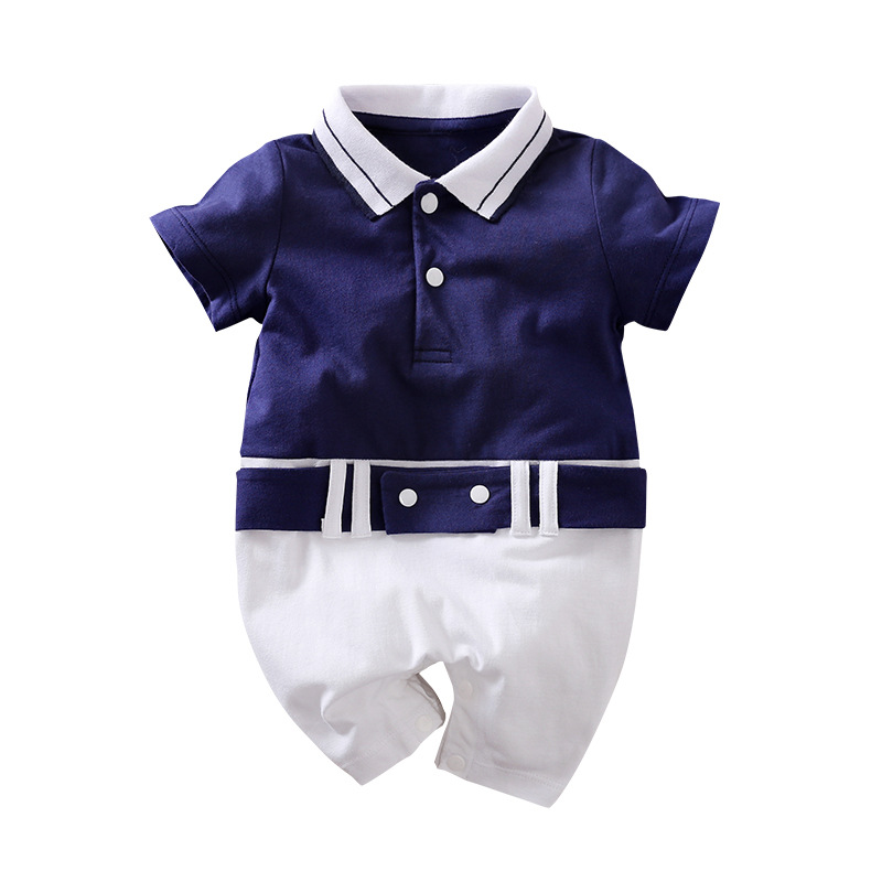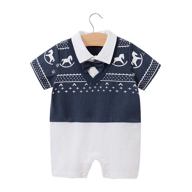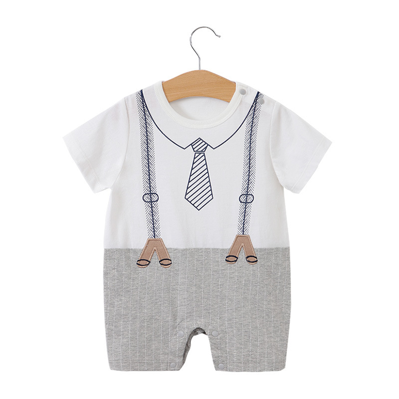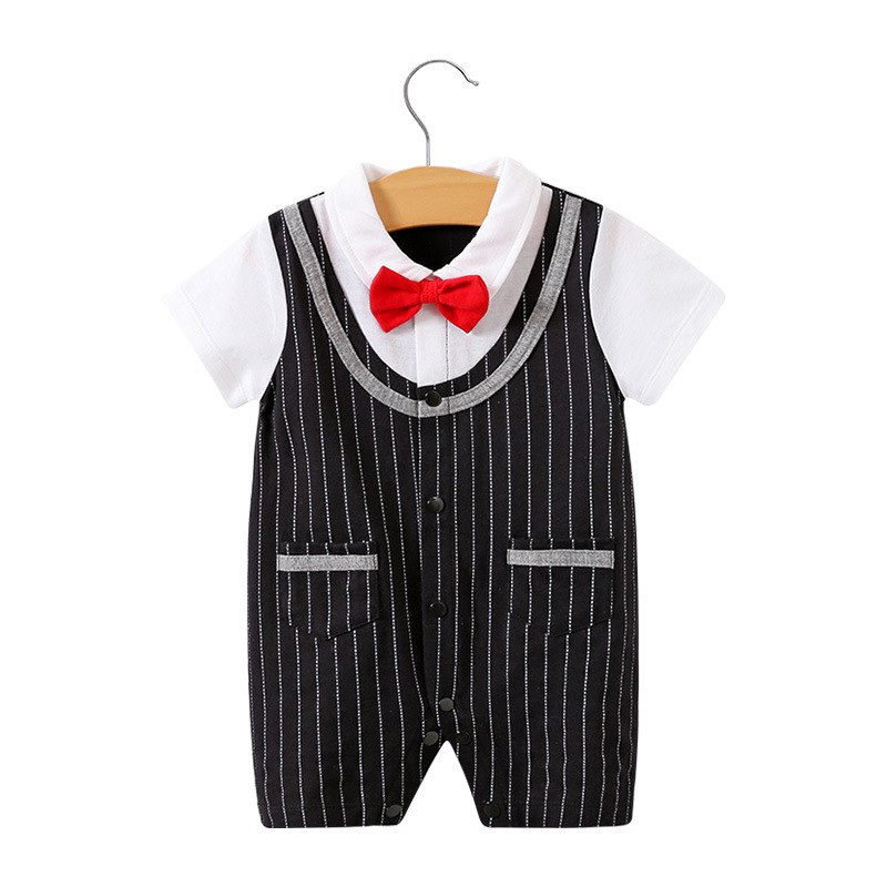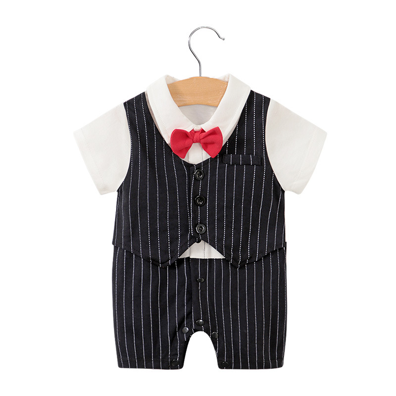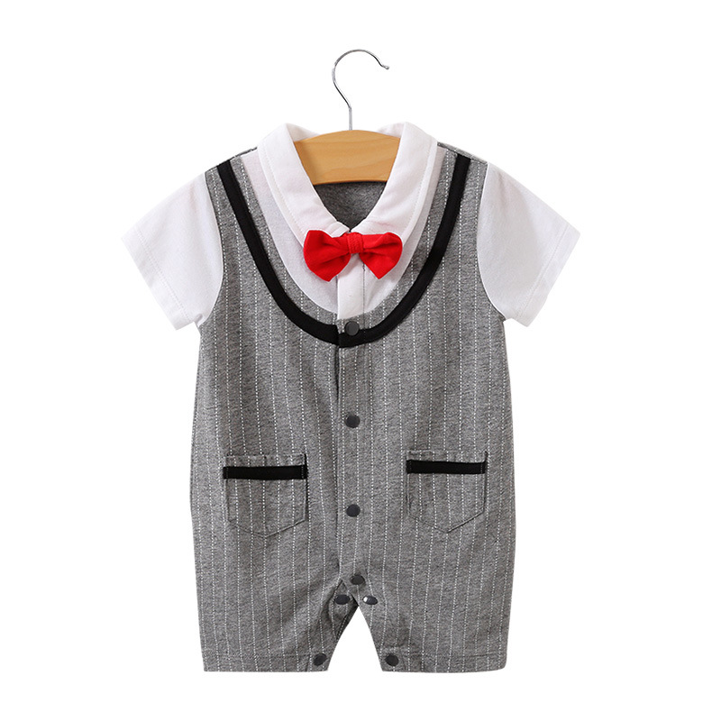 Newborn Baby Jumpsuit Short Sleeved Male Baby Gentleman One Year Old Dress Baby Jumpsuit