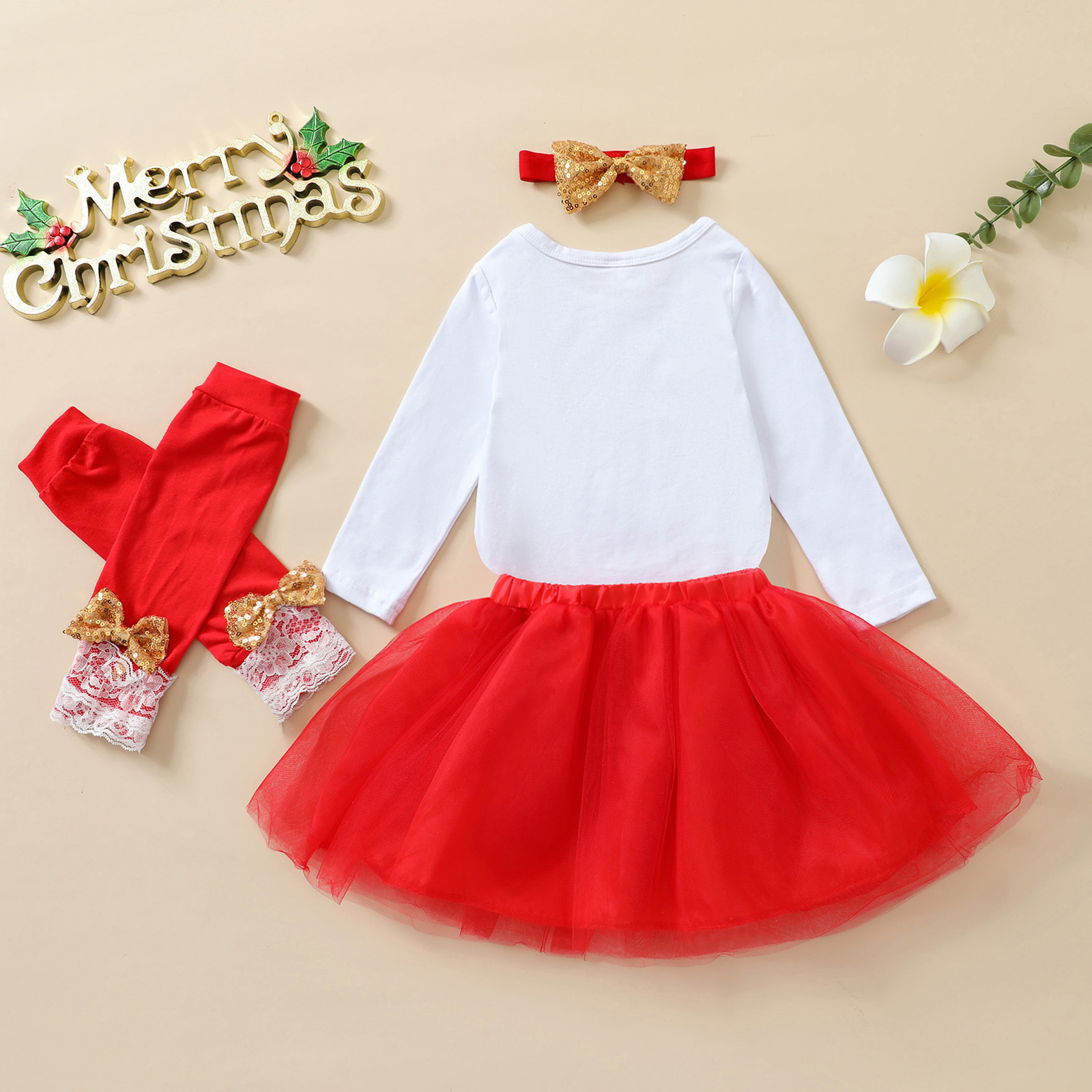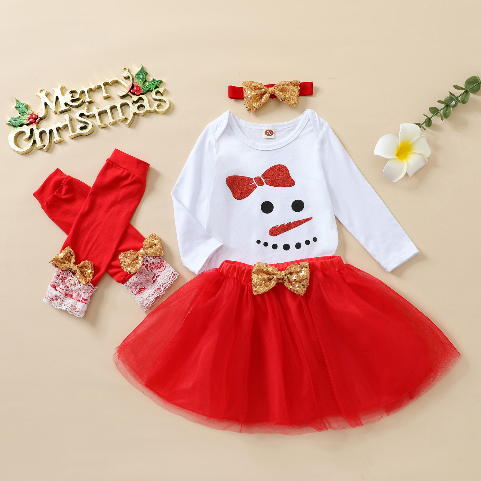 Baby Girls Christmas Clothing Sets Cartoon Deer Snowman Bodysuit +Tulle Skirts+Headband Autumn Girl Clothes