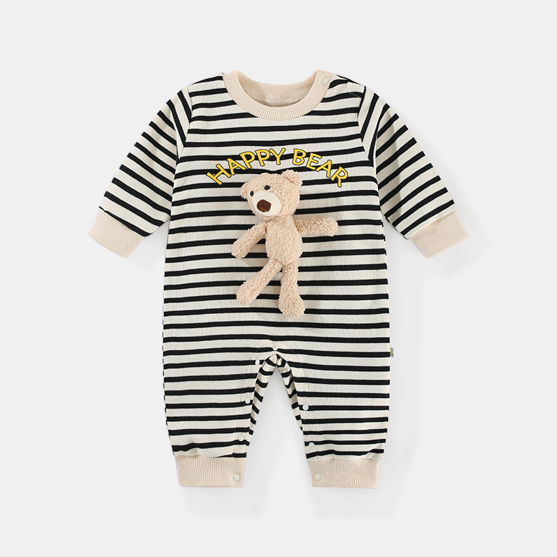 Baby Jumpsuit Autumn New Men And Women Baby Striped Three-Dimensional Bear Romper Long Sleeve Spring And Autumn Baby Clothes