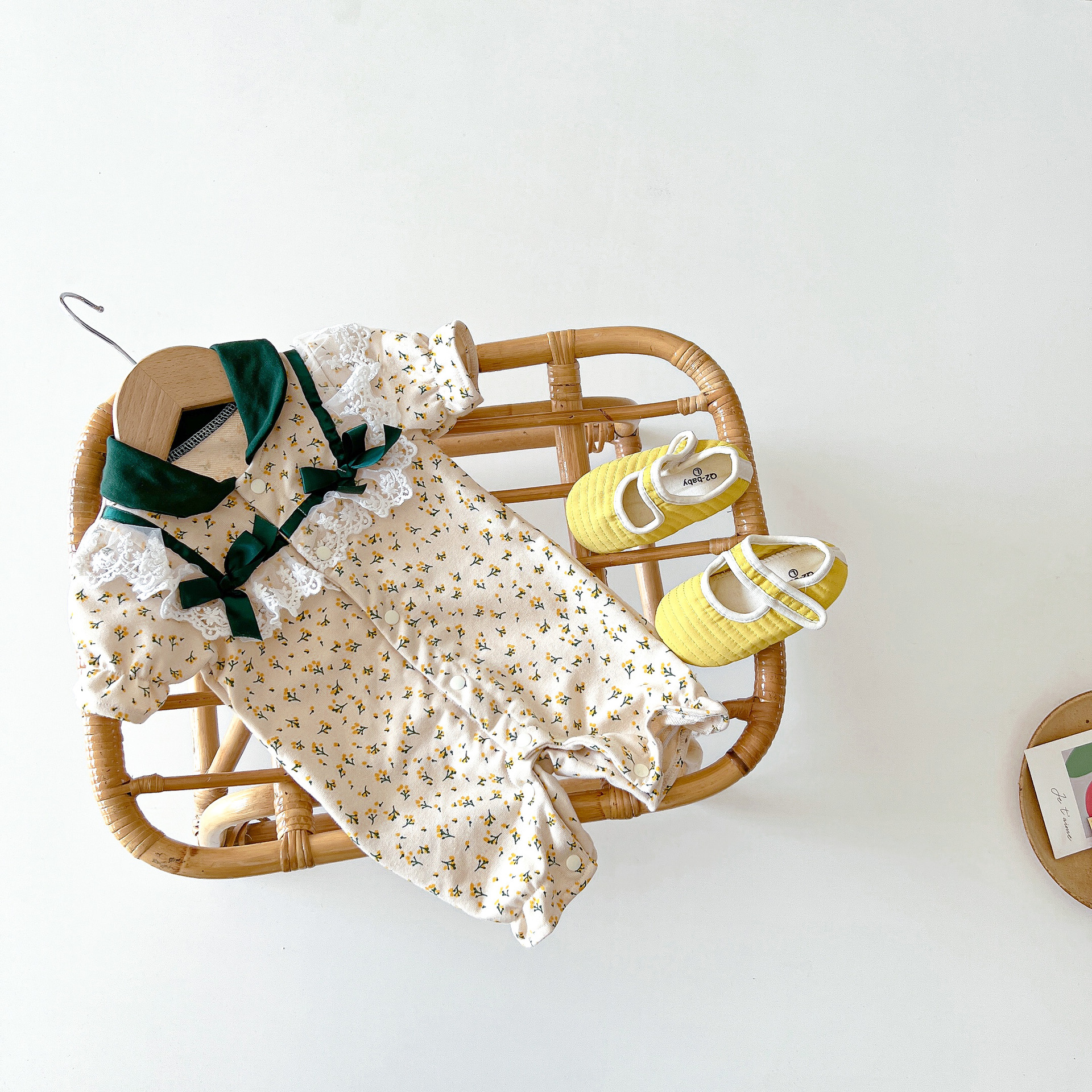 Baby Clothes Autumn New Baby Girl Small Floral Romper Long-Sleeved Bow Fake Two-Piece Baby Clothes