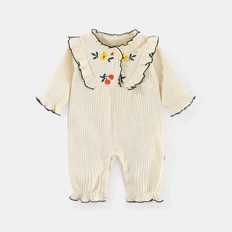 Baby Onesie Fall New Baby Girl Green Flower Sweet Lace Climbing Suit Newborn Baby Clothes