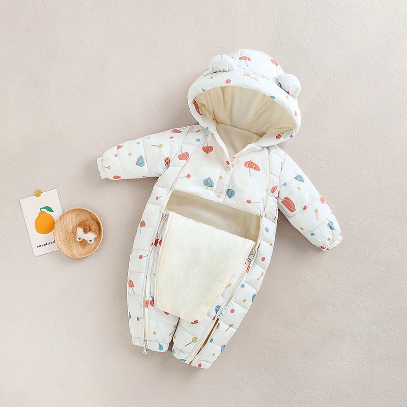 Baby Winter Clothes Newborn One-Piece Clothes Autumn And Winter Plush Thickened Outerwear Hugging Suit