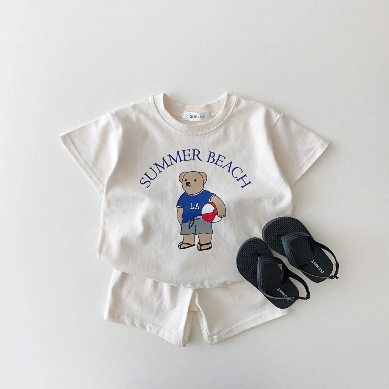 Boys And Girls Cartoon Bear Summer Thin Cotton Suit Two-Piece Baby Loose Suit Tide