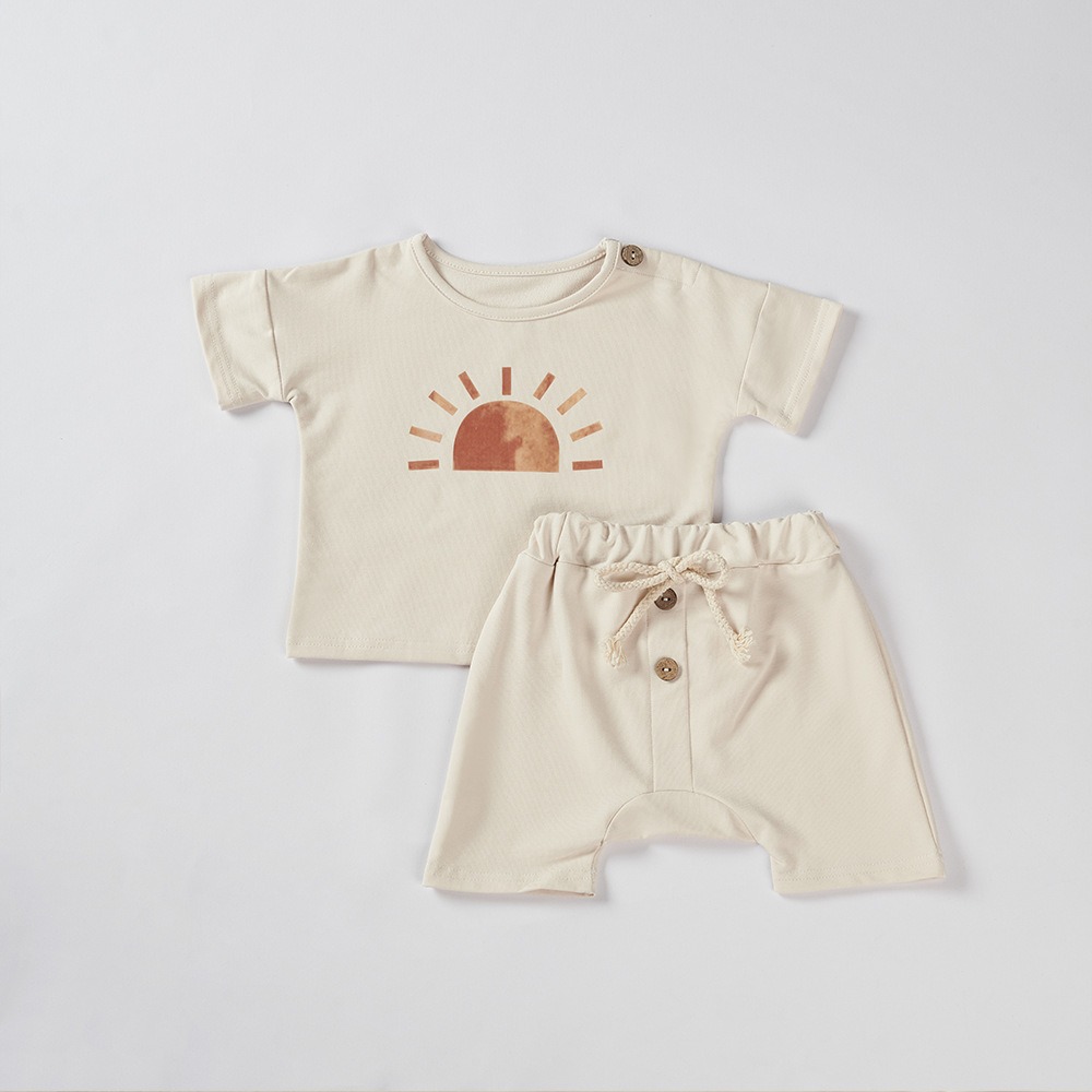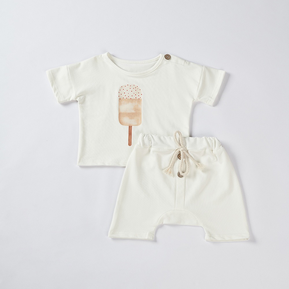 Boys and Girls Ice Cream Sun Print Summer Pure Cotton Set Two Piece Baby Loose Set