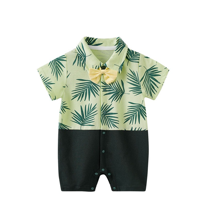 Boys Short Sleeved Jumpsuit, Hawaiian Style Printed Baby Crawling Suit, Boys Summer Thin Outdoor Vacation Clothes