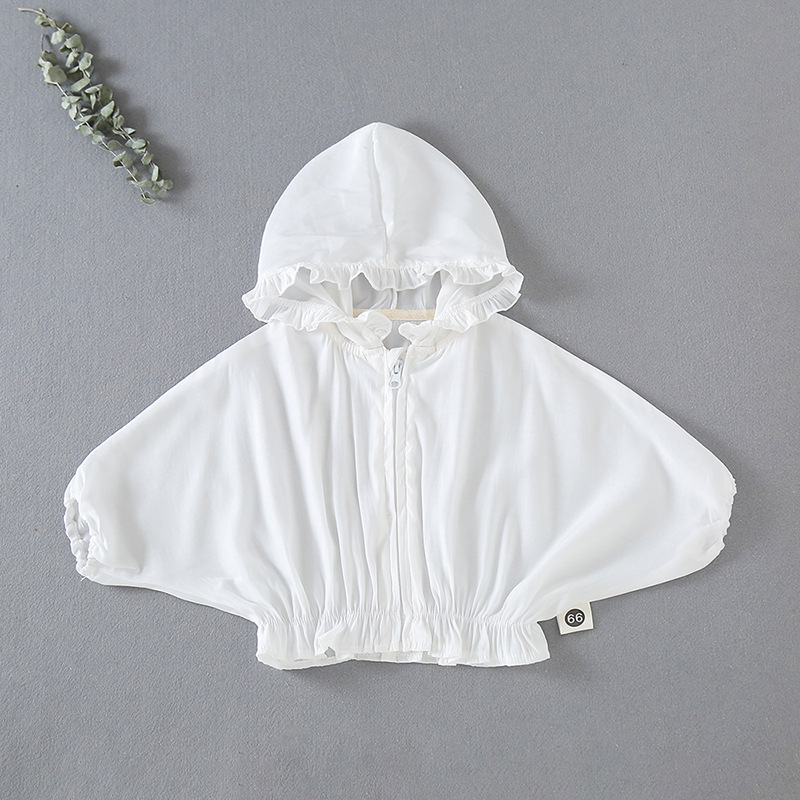 Children’s Air-Conditioning Shirt Newborn Solid Color Chiffon Hooded Top Girl Baby Sunscreen Outing Clothes