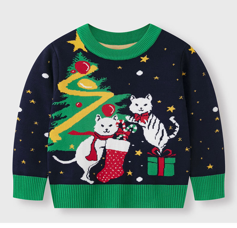Children’s Christmas cartoon reindeer sweater baby base pullover knit sweater