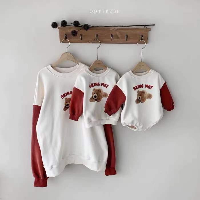 Spring new ins infant boys and girls baby cloth bear print pullover triangle climb out romper