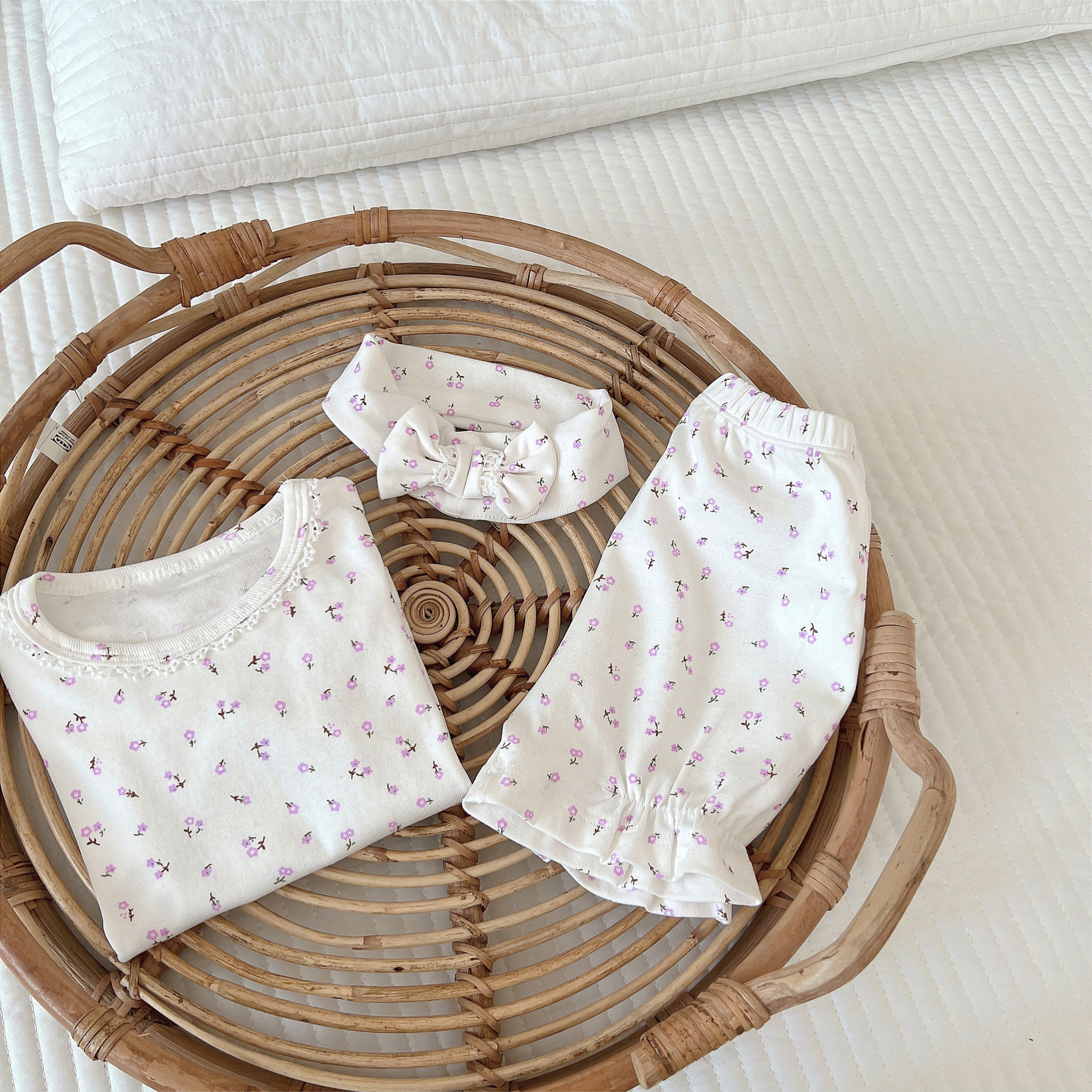 Summer Baby Clothes Floral Puff Sleeve Bread Pants Baby Girl Romper Romper Two-Piece Set