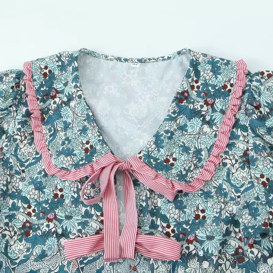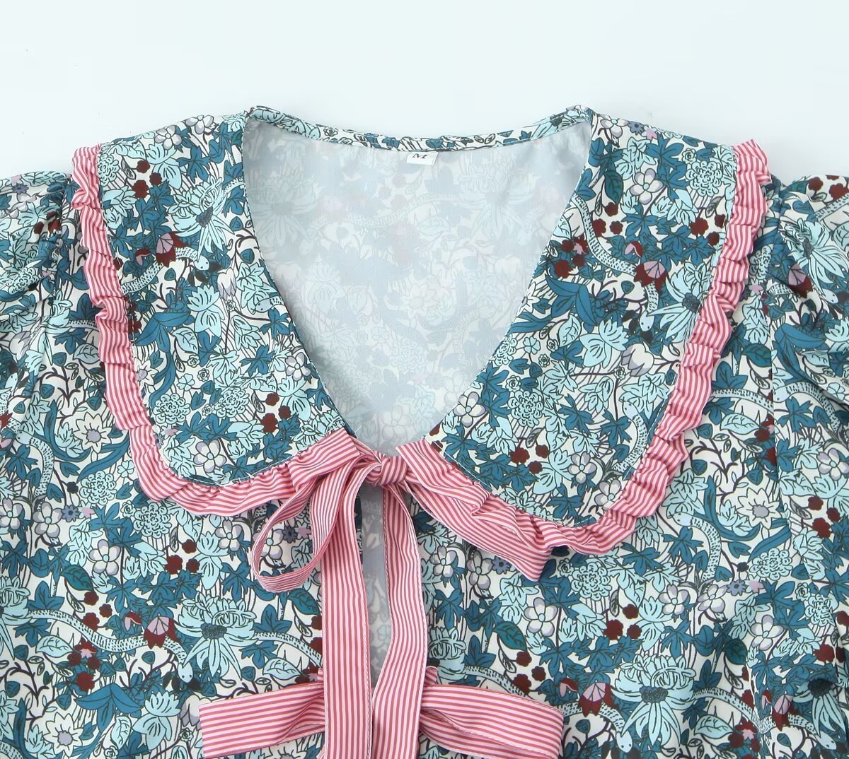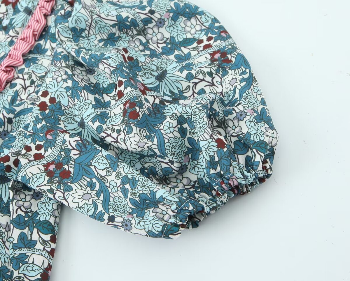 Sweet and fresh baby collar with bubble sleeves and small floral shirt