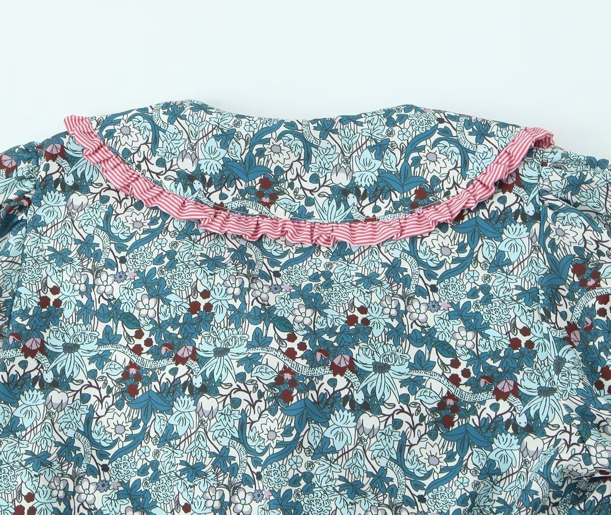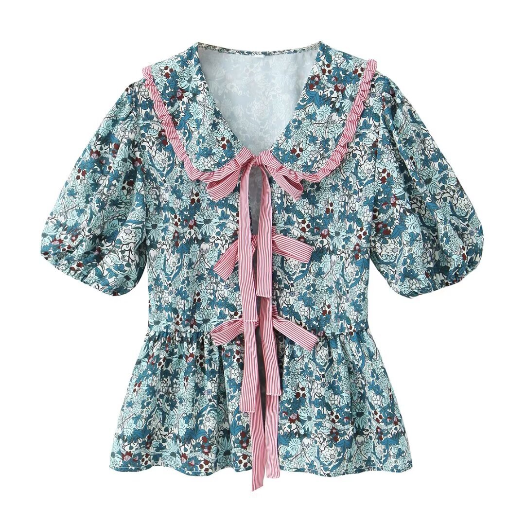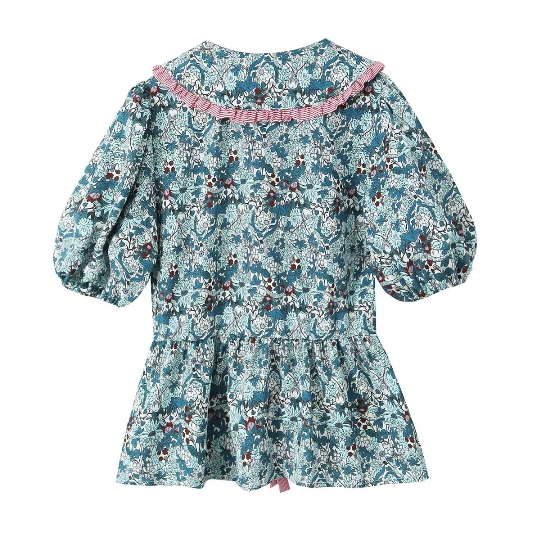 Sweet and fresh baby collar with bubble sleeves and small floral shirt